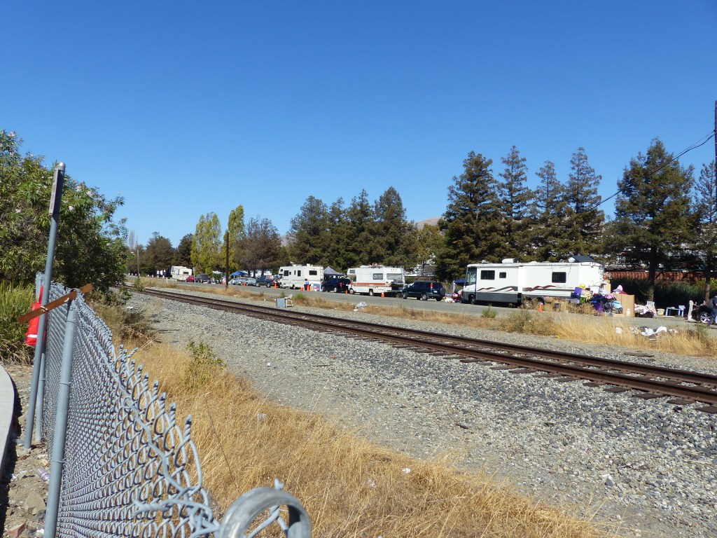 The site is located just across the railroad tracks from Railroad Avenue, where a long line of RV’s, trucks, and cars are parked, some with tents beside them. It’s one of the largest unhoused communities in Milpitas, and has been growing since the pandemic began. The Milpitas Police Department (MPD) has been monitoring the situation, increasing patrols to keep everyone safe, and working in tandem with local companies whose large semi-trailers go by on a regular basis.